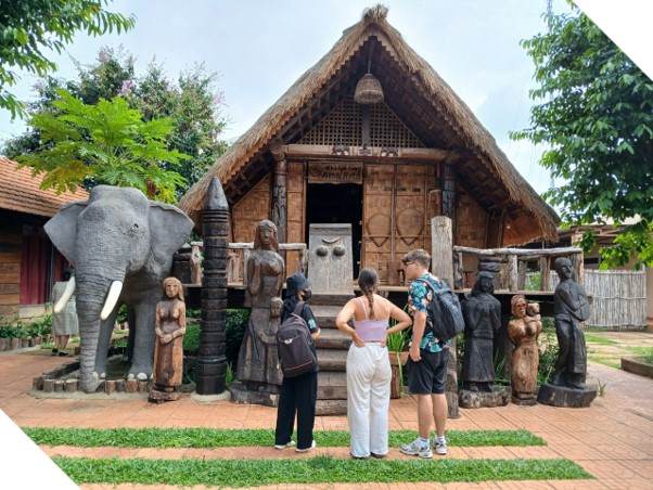 Colombian friends are visiting the Dak Lak Museum to learn about the rich history of Vietnamese coffee.